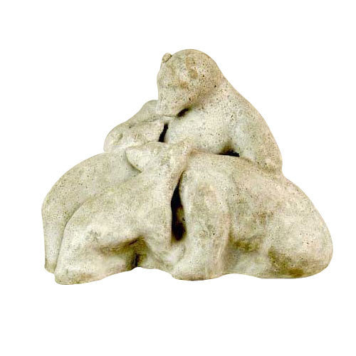 - The fiber stone material, a mixture of sand and stones cast into the surface, gives the sculpture the appearance of aged stone while remaining lightweight and less fragile than concrete.