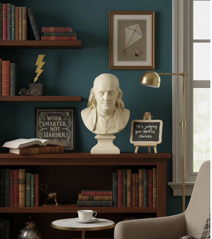 - Whether displayed on a pedestal, shelf, or mantel, it serves as a tribute to Benjamin Franklin's remarkable legacy.