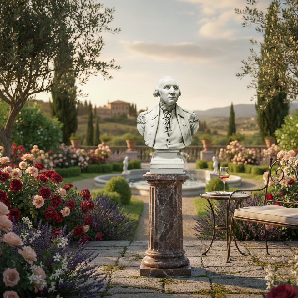 Honor the birth of a nation with this magnificent, imposing bust of George Washington, the commanding General of the Continental Army and the revered first President of the United States. This sculpture captures Washington at the peak of his power, impeccably dressed in his military uniform.