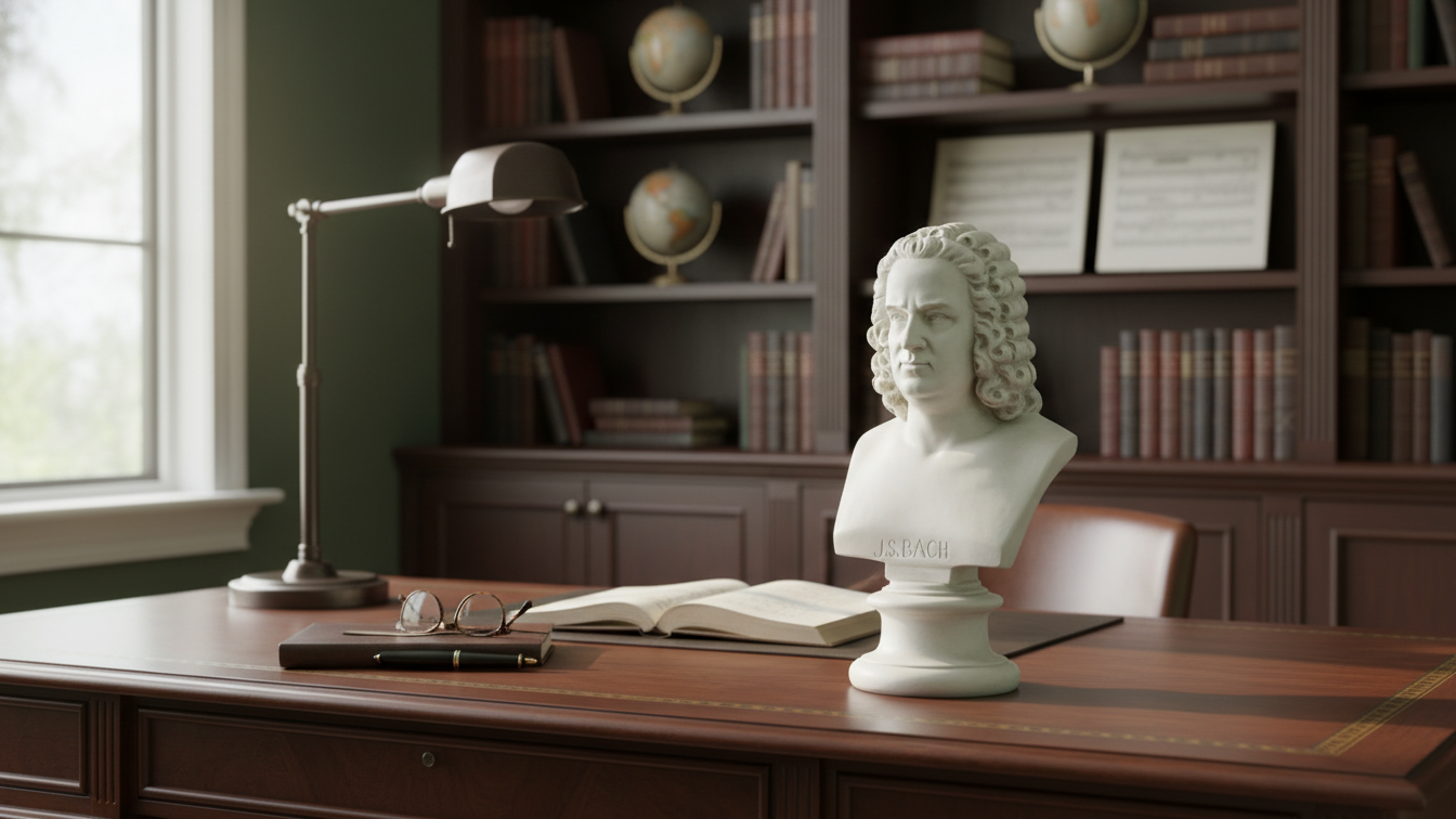 A tribute to a master composer: Bach’s legacy shaped Western classical music through his mastery of counterpoint, harmony, and form—this bust honors that enduring influence.