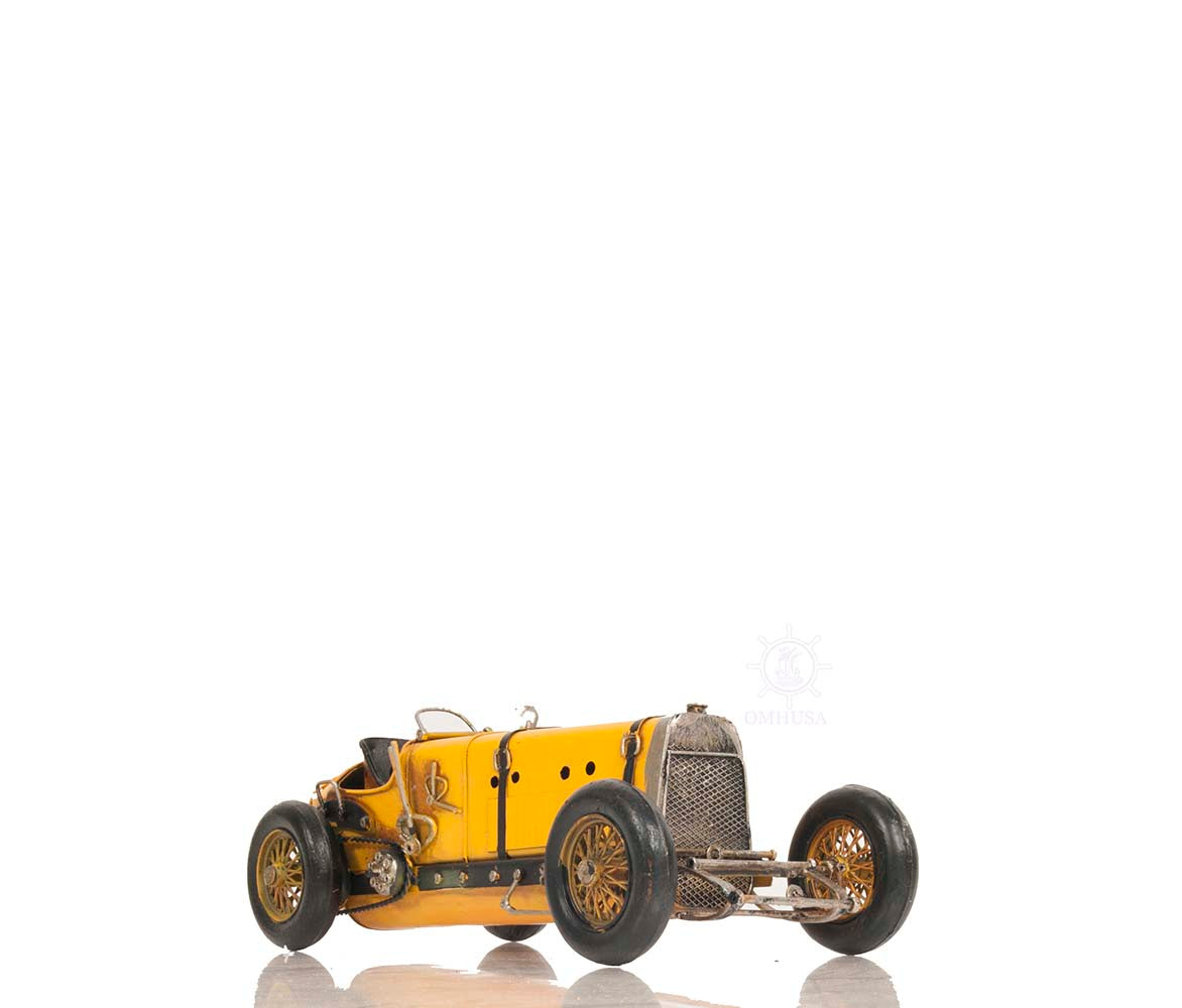 The P2 was introduced by Alfa Romeo for the Circuit of Cremona in northern Italy in 1924, where Antonio Ascari won at over 158 km/h (98 mph), and then went on to win the speed trial at 195 km/h (121 mph). The car was the first creation of Alfa’s new designer Vittorio Jano who had been recruited from Fiat by Enzo Ferrari when Nicola Romeo scrapped the P1 after its poor performance in the 1923 Monza Grand Prix against Fiat. The P2 was powered by Alfa’s first straight-8 cylinder supercharged engine with 2 carburetors placed after the compressor. Only 2 of the 6 original models survive, and they can be seen in the Alfa Romeo Museum in Arese and the Turin Automobile Museum. Our model is handmade from tin and painted in yellow color. It features many intricate details such as turnable wheels & tires, exhaust system, front wireless radiator, black painted steering wheel, and seat. It's a great model for any office decoration or passionate car collectors. Alfa Romeo is a registered trademark of FCA Group Marketing S.p.A